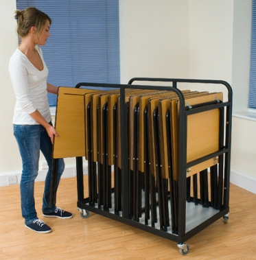 The Tech2 exam desk trolley is a robust and highly manoeuvrable trolley for folding exam desks.