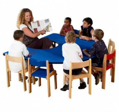 6 shaped top options are available in the Tuf-Top table range: Flower, Teacher Flower, Horseshoe, Clover, Arc and Rectangle. The Tuf-Top Horseshoe table comes in three laminate top colour choices.